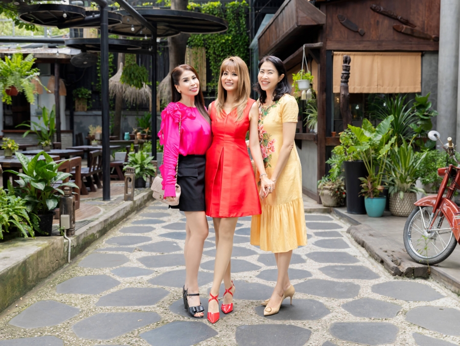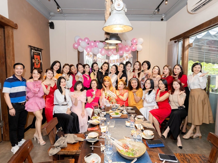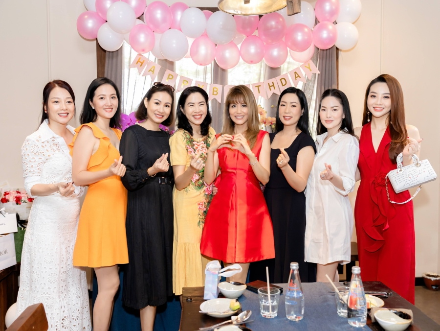 Buổi trưa, nàng hậu xinh đẹp đã có một cuộc hẹn hò cùng các bạn thân thâm niên như NSND Trịnh Kim Chi, diễn viên Lý Hương, MC Quỳnh Hoa, ca sĩ Hồ Hoàng Yến, HH Quý bà Hoàng Yến, Á khôi Hoàng Mến, Á khôi Tăng Huệ Văn, Á hậu MC Thư Đình…tại nhà hàng chay của cô.
