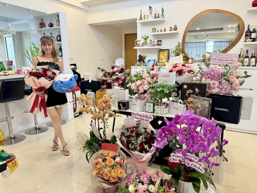 Vừa từ Mỹ về nhà đuợc 3 ngày, Á hậu Băng Châu đã có buổi kỷ niệm sinh nhật ấm cúng bên gia đình và những người bạn thân yêu. Chị tươi cười cho biết: “Buổi trưa với bạn bè tại nhà hàng chay trong không gian ấm áp, buổi tối cùng gia đình dùng buffet tại nhà hàng Q2. Thật là 1 ngày vô cùng có ý nghĩa đối với Châu!”