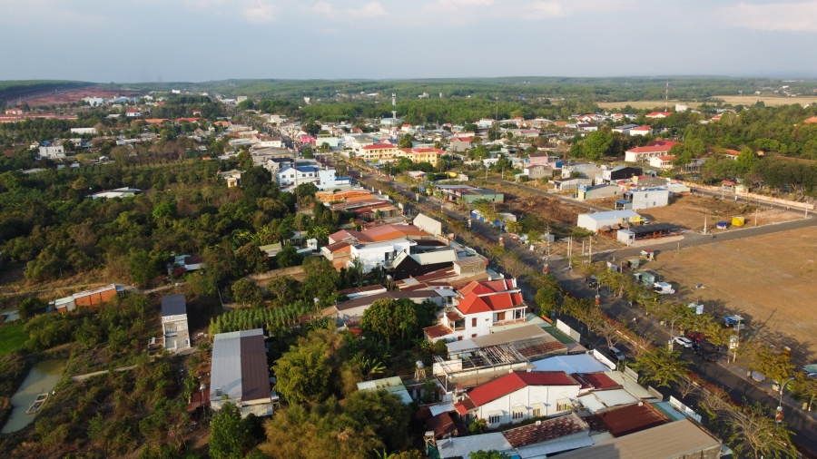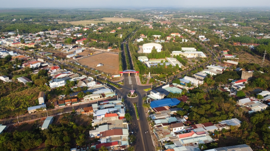 Trung tâm huyện Bù Đốp (Bình Phước) nhìn từ trên cao, đang trên đà phát triển vững mạnh