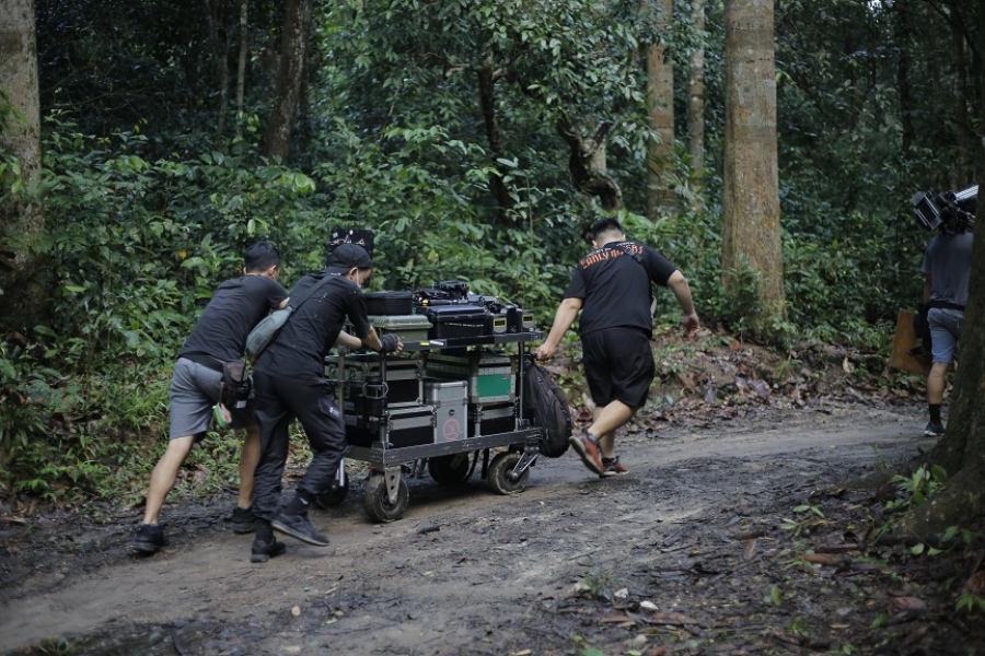 Ngoài việc ghi hình trong studio, ekip Móng vuốt còn có những cảnh quay trong rừng ở Thác Mai, Đồng Nai. “Có 2 bài toán đặt ra: có thể quay hoàn toàn ở studio cũng được, nhưng vào rừng quay để tạo cảm giác thật cho diễn viên khi bị nhốt trong chiếc xe giữa rừng”, đạo diễn Lê Thanh Sơn giải thích. Ekip cũng rất có ý thức trong việc không xả rác hay chặt cây. “Những cây mà chúng tôi dựng, tái tạo bằng nhiều kỹ thuật của thiết kế để có thể hòa vào bên trong tổng quan của bên đơn vị Thác Mai. Thứ chúng tôi dở duy nhất là lều xây ở chỗ đó để 100% thiên nhiên hóa khu vực, không có dấu ấn nào của con người. Rác hay rễ cây thiết kế quấn bằng dây cao su, phải chế biến, tô màu sao cho giống như thật mới đóng lên cây đó. Trong ngày premiere cây đó sẽ xuất hiện”, đạo diễn Lê Thanh Sơn “nhá hàng”.