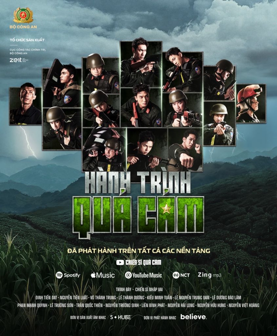 MV chủ đề Hành trình quả cảm quy tụ 15 chiến sĩ nhập vai gồm Tiến Đạt, Tiến Luật, Thành Trung, Ngô Kiến Huy, Kiều Minh Tuấn, Binz, Lê Dương Bảo Lâm, Phan Mạnh Quỳnh, Neko Lê, Quốc Thiên, Liên Bỉnh Phát, Song Luân, Long Hạt Nhài, Hưng Nguyễn và MONO. Sự xuất hiện của dàn nghệ sĩ trong hình ảnh người chiến sĩ Công an nhân dân mang đến cho khán giả cảm giác vừa tự hào, vừa gần gũi - khi âm nhạc của người nghệ sĩ hòa cùng những khoảnh khắc chân thật, đẫm mồ hôi nhưng rực rỡ của người chiến sĩ.