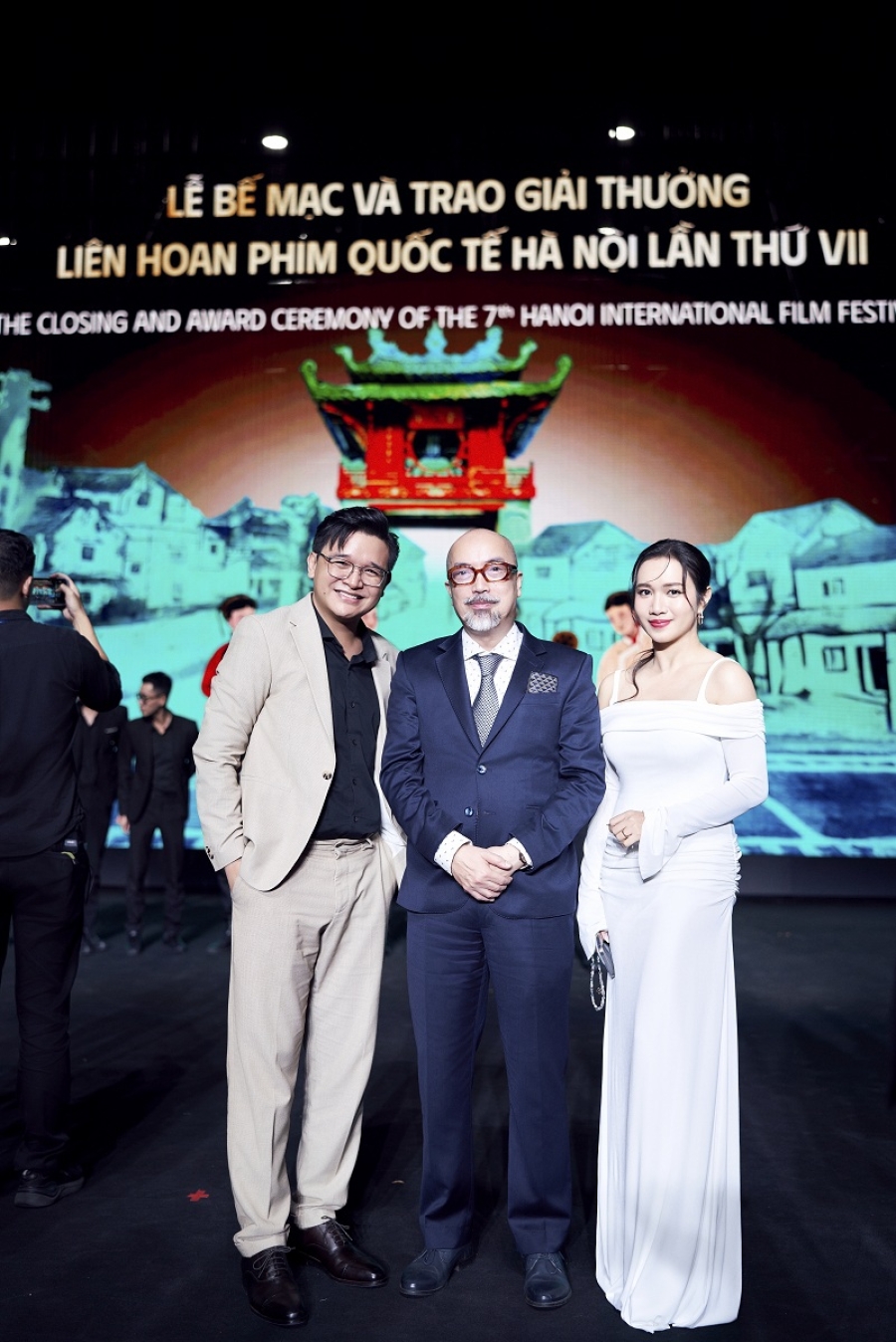 Nam đạo diễn Võ Thanh Hòa nhà sản xuất Mai Bảo Ngọc gây chú ý khi tham gia thảm đỏ bế mạc Liên hoan phim Quốc tế Hà Nội 2024 (HANIFF 2024). Tại sự kiện, vợ chồng đạo diễn & nhà sản xuất Võ Thanh Hòa - Mai Bảo Ngọc đã có dịp hội ngộ, trao đổi kinh nghiệm làm phim với nhiều diễn viên, ê-kíp trong và ngoài nước.