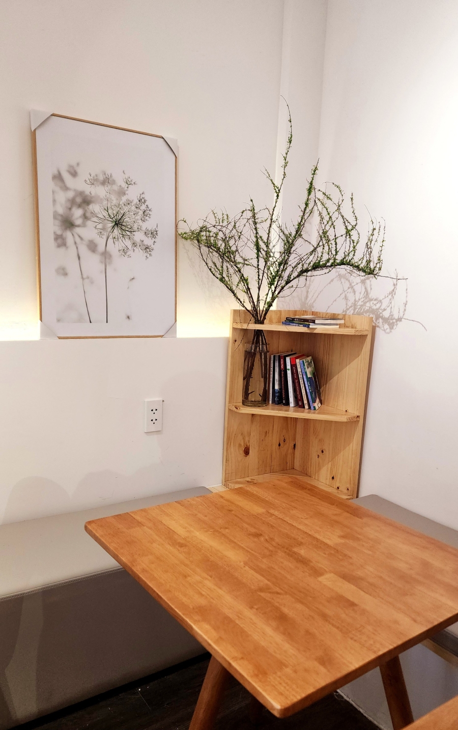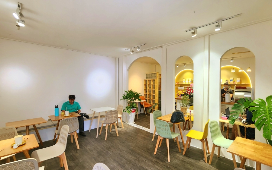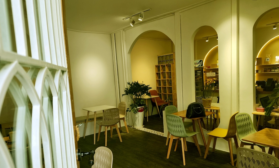 Bước vào không gian quán chúng ta sẽ lâng lâng với sắc màu tông vàng ấm, tường trắng sang trọng được thiết đầy tinh tế của vị nữ chủ nhân xinh xắn là một MC quen thuộc của Đài truyền hình HTV.