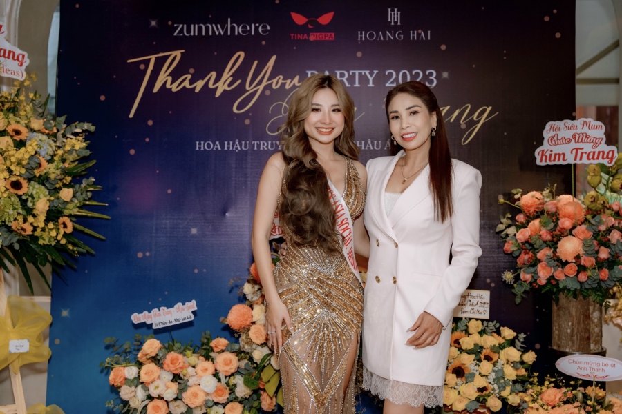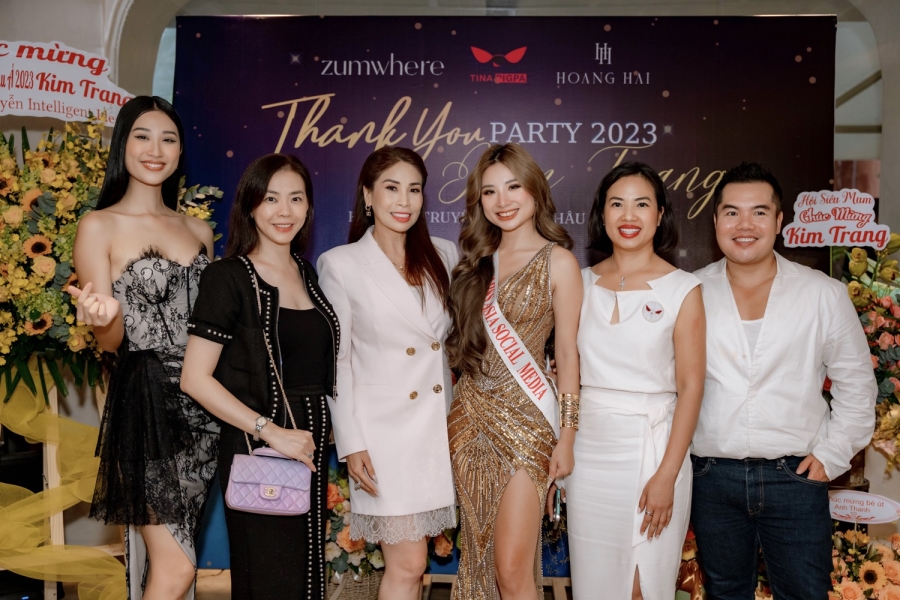 Hai người đẹp Thanh Khoa - Hoa hậu Sinh viên Thế giới 2019 và Phạm Thư - Top 5 Miss Universe Việt Nam 2023, cũng đến chúc mừng Kim Trang với giải thưởng quốc tế này. Bên cạnh đó là những người bạn thân thiết: Tiến Trường - Mister Fitness Super Model Vietnam 2023, Kim Anh - Miss Fitness Super Model Vietnam 2023, Thái Bùi - Á quân Fitness Super Model Vietnam 2023, Nguyễn Hoàng Tùng - Á quân Fitness Super Model Vietnam 2023, Song Nhi - Miss Fashion Fitness Model World Vietnam 2022…