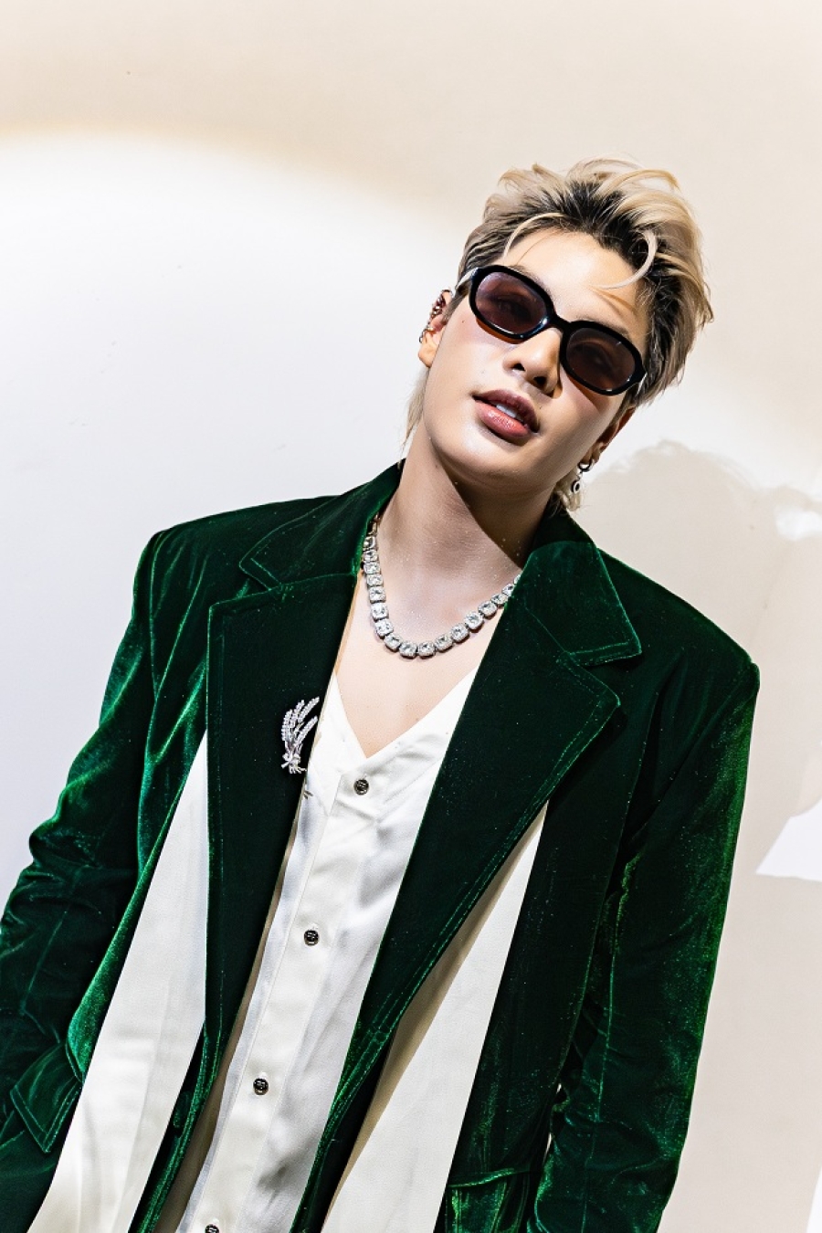Ca sĩ Felix Tiến Quang không còn xa lạ với một vẻ ngoài điển trai, năng động trong trang phục vest xanh lá cây cách điệu tạo điểm nhấn tinh tế, lịch thiệp của một “quý ông” mà vẫn mang lại sự tươi mới trẻ trung của một ca sĩ thế hệ GenZ.