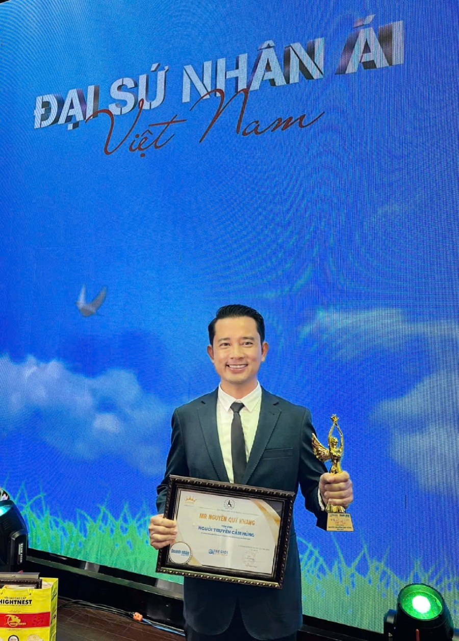 Nguyễn Quý Khang không chỉ được biết đến là người đứng sau nhiều chương trình sân khấu, sự kiện và các cuộc thi sắc đẹp, mà còn là gương mặt quen thuộc trong các hoạt động cộng đồng. Mới đây, anh tiếp tục được tôn vinh danh hiệu Người truyền cảm hứng 2025–2026 tại Lễ trao giải Đại sứ Nhân ái Việt Nam, ghi nhận những đóng góp tích cực cho công tác xã hội và thiện nguyện.