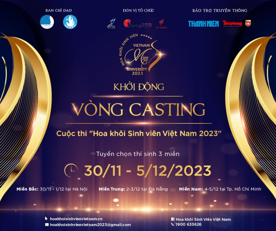 Cuộc thi Hoa khôi Sinh viên Việt Nam 2023 sẽ chính thức được khởi động vào ngày 30/11/2023 và kéo dài tới ngày 05/12/2023. Từ gần 1.000 hồ sơ dự thi, Ban Tổ chức đã sàng lọc và tuyển chọn ra được hàng trăm thí sinh để bước vào Vòng Casting trên cả nước.