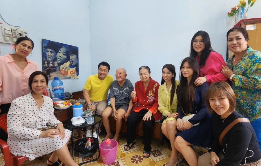 Cả nhà Lý Hùng rủ nhau đi hơn chục người với ba thế hệ, Bà ngoại là Cô Lan, Lý Hồng, Lý Nga, rồi chị dâu là bà xã Lý Sơn cùng các cháu từ Đức, từ Mỹ cũng rủ nhau vào thăm các nghệ sĩ.