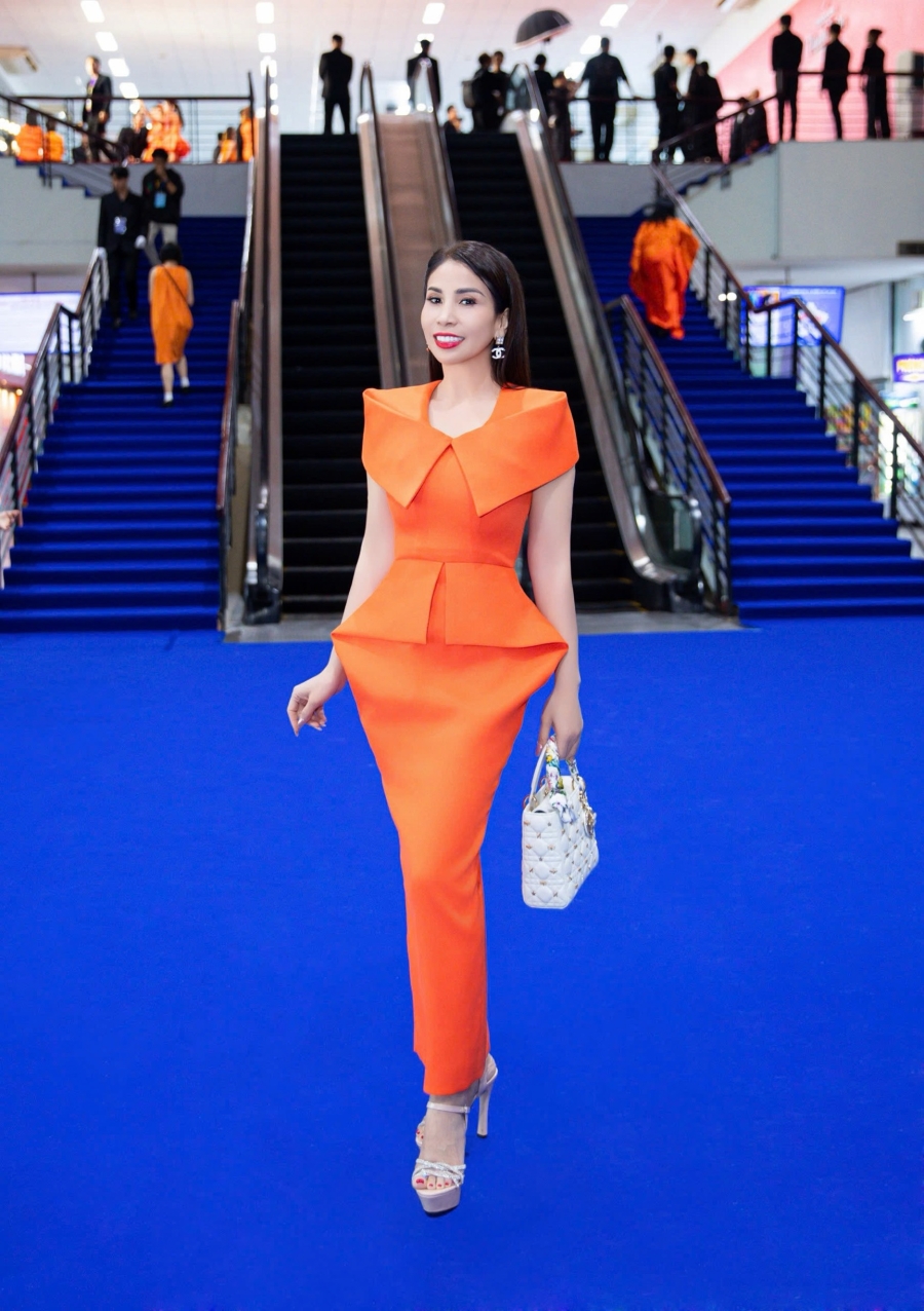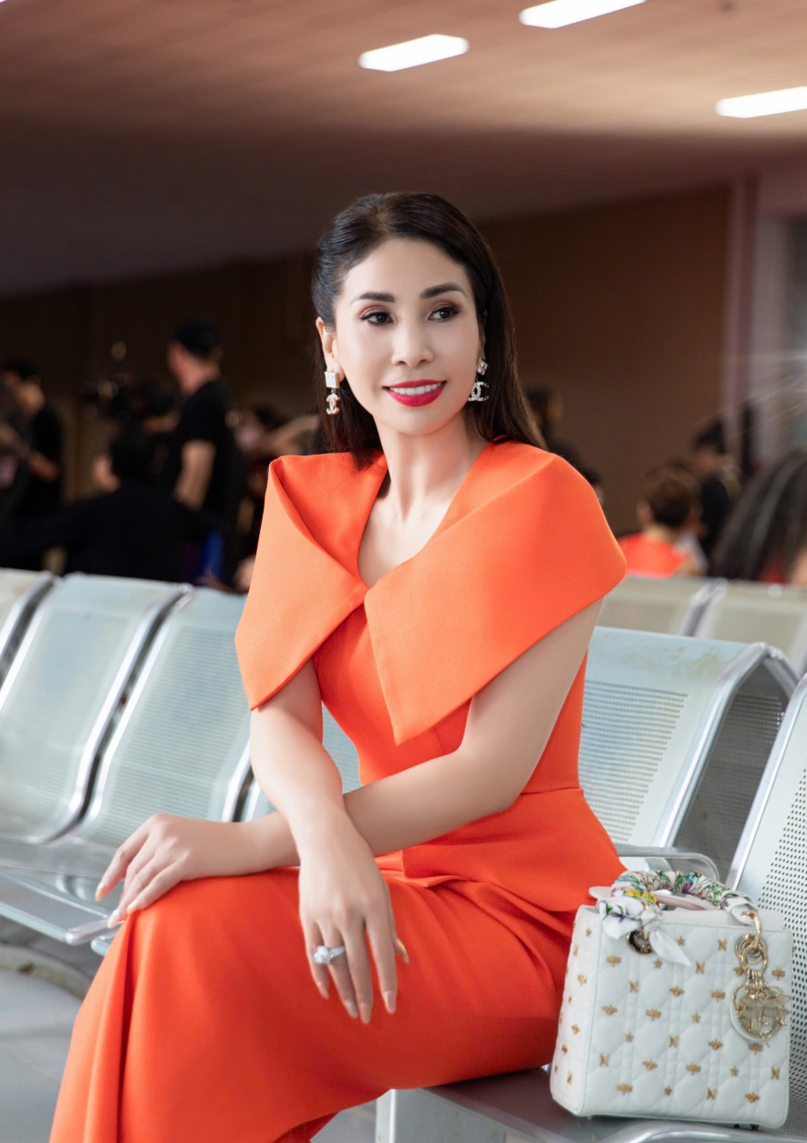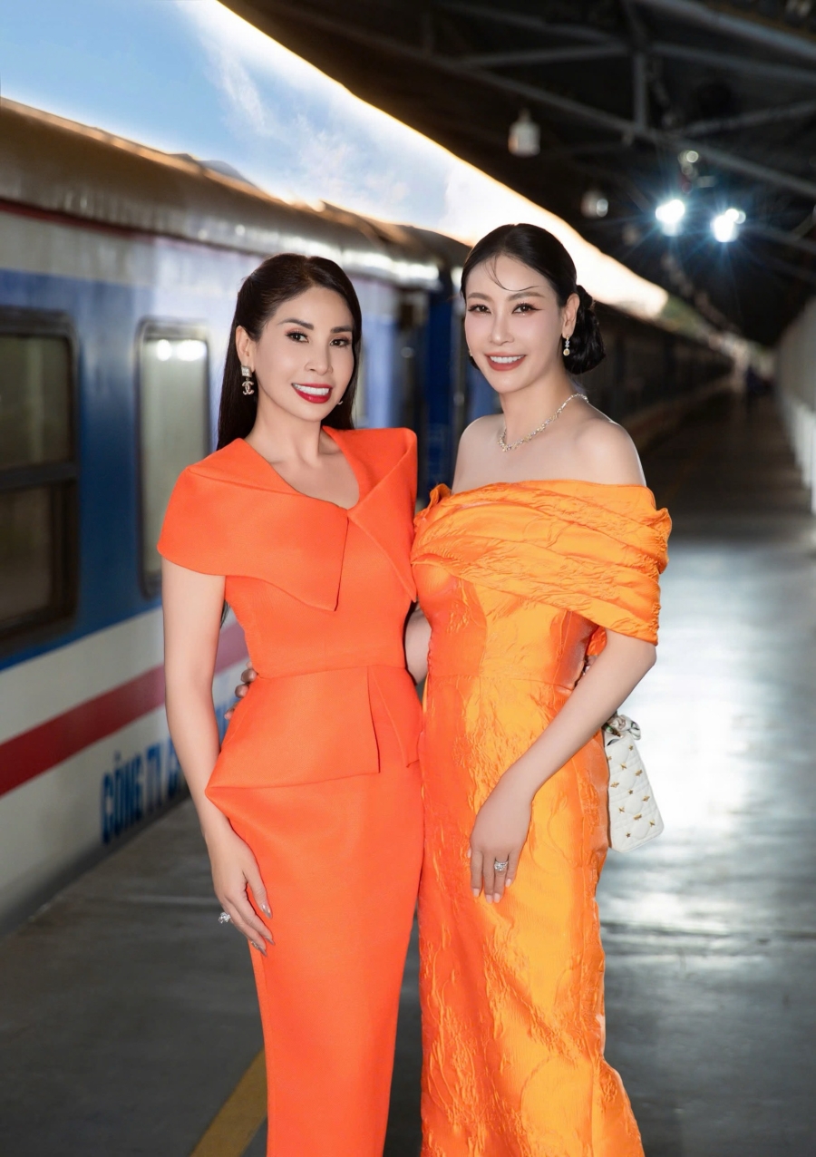 Diễn viên điện ảnh Lý Hương chọn cho mình chiếc đầm màu cam thắt eo và tôn dáng của Vu Ngoc & Son kết hợp cùng phụ kiện và túi xách trang nhã để khoe khéo vóc dáng khỏe khoắn nhờ chăm chỉ luyện tập thể thao kết hợp với chế độ ăn và lối sống lành mạnh. Cô cho biết: “Mặc dù sinh ra và lớn lên tại mảnh đất Sài Gòn nhưng đây là lần đầu tiên Lý Hương có cơ hội đặt chân đến Ga Sài Gòn. Cảm xúc khi đặt chân đến đây nó lạ lắm và càng thú vị hơn khi được thả mình trong không gian thời trang được thiết kế bên cạnh đường tàu. Mọi thứ thật đẹp, đáng nhớ và rất bất ngờ”.