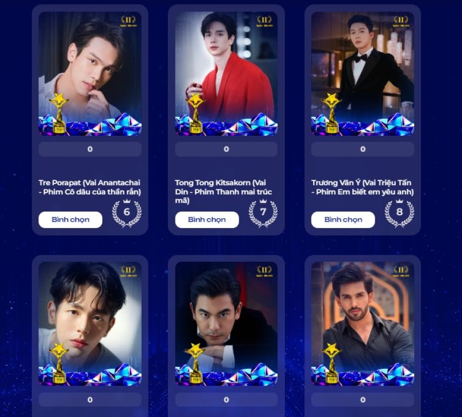 Thêm một hạng mục mới toanh lần đầu tiên được mở ra tại đấu trường Ngôi sao xanh 2024 chính là giải thưởng “Cặp đôi được yêu thích nhất” đánh dấu cho sự vươn tầm đổi mới to lớn, vinh danh nhiều hơn nữa cống hiến của các nghệ sĩ cũng như thỏa sự yêu thích của người hâm mộ. Từ gần 30 cặp đôi nổi bật của màn ảnh Việt trong năm qua, sau 10 ngày bình chọn trực tuyến đầy sôi nổi, 10 cặp đôi có lượt bình chọn cao nhất từ khán giả đã lộ diện, sẵn sàng bước vào cuộc đua ‘voting’ chính thức tại Ngôi sao xanh sắp diễn ra từ 11/12/2024.