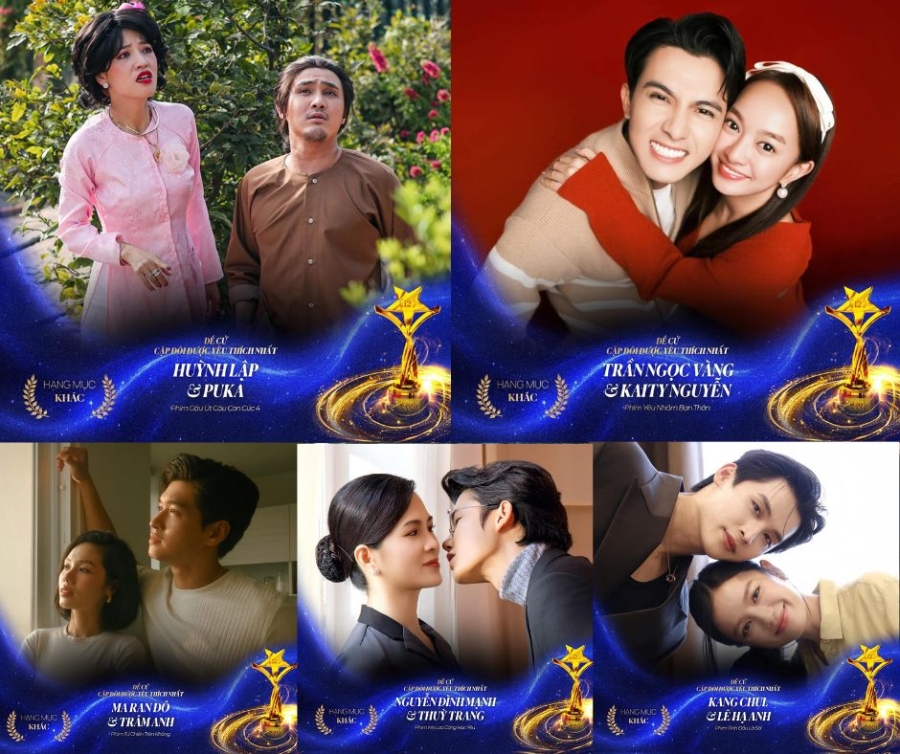 Danh sách Top 10 năm nay quy tụ sự đa dạng từ điện ảnh lịch sử, hành động, tâm lý xã hội, rom-com đến web-drama sitcom, thể hiện sự quan tâm rộng rãi của khán giả với nhiều thể loại và phong cách diễn xuất. Khán giả đặc biệt xúc động trước cặp đôi trong phim Mưa Đỏ: Đỗ Nhật Hoàng - Lê Hạ Anh (vai Cường và Hồng) với mối tình đầy nhân văn và bi tráng giữa khói lửa chiến trường, cùng với cặp đôi Steven Nguyễn - Lê Hạ Anh (vai Quang - Hồng) mang đến nét đối lập kịch tính. Cặp đôi Huỳnh Lập - Puka (Cậu Út Cậu Con Cúc 4) tiếp tục chiếm trọn tình cảm người xem nhờ sự tung hứng duyên dáng, tự nhiên, trở thành cặp đôi web-drama đang được yêu thích nhất hiện tại.