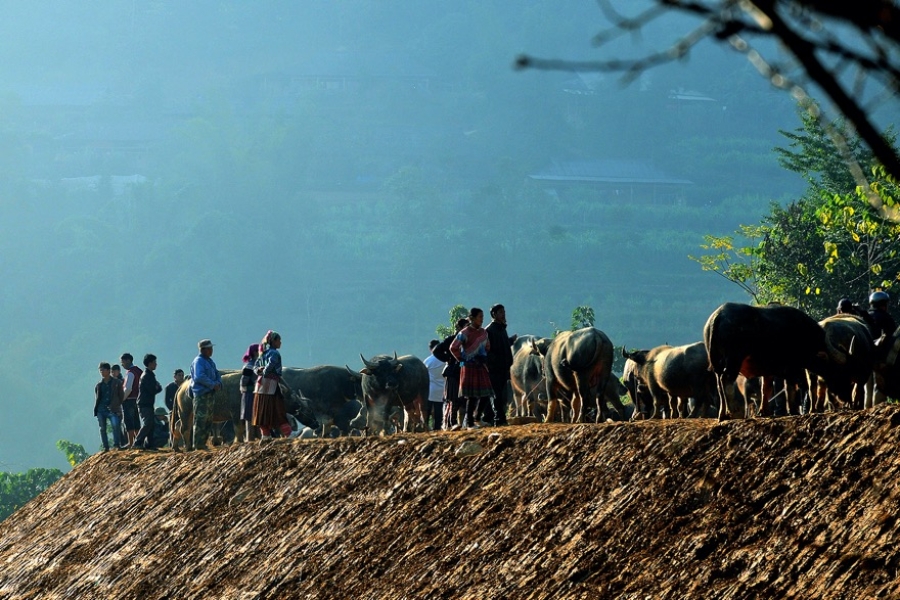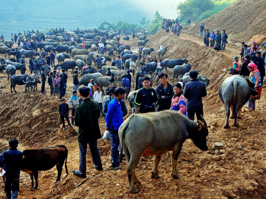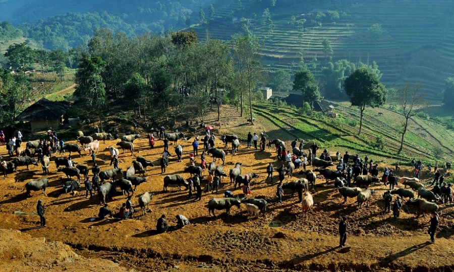 Ngày thứ 7 hàng tuần, đồng bào sống nơi vùng cao Lào Cai như hẹn trước cùng nhau dắt trâu ra chợ bán.Chợ trâu có từ sáng sớm kéo dài đến xế chiều bên cạnh chợ Phiên Cán Cấu.