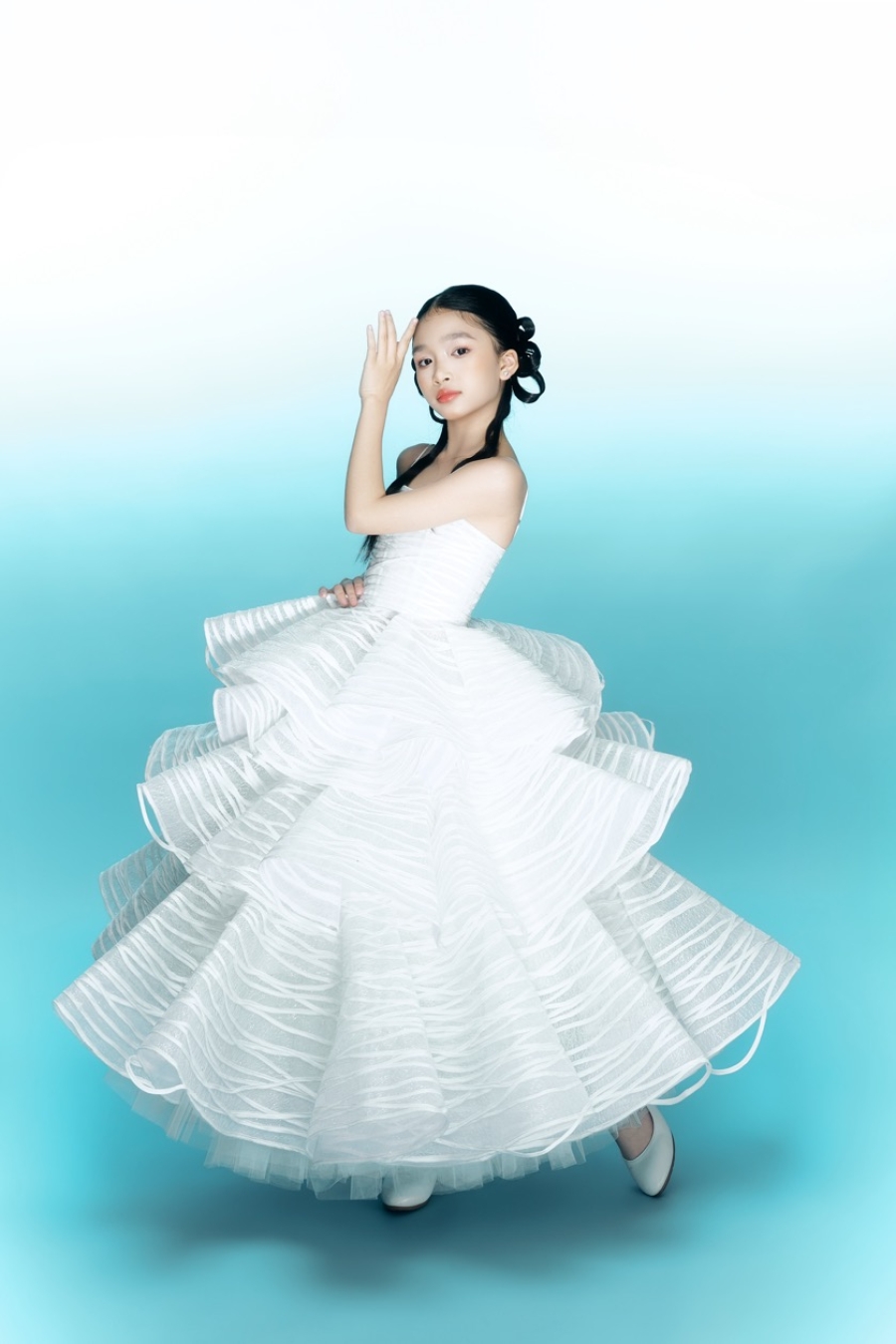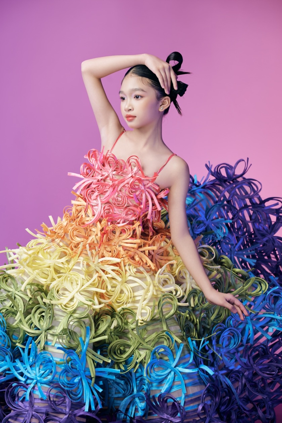 Không cần sân khấu lớn hay ánh đèn rực rỡ, Ruby Tâm Nhi vẫn tỏa sáng trong bộ ảnh xuân mới khi khoác lên mình ba thiết kế lấy cảm hứng từ bánh xèo, bánh rế và mứt dừa của NTK Nguyễn Minh Công. Ở tuổi 11, mẫu nhí ghi điểm bởi thần thái tự tin, biểu cảm mềm mại và khả năng làm chủ trang phục.