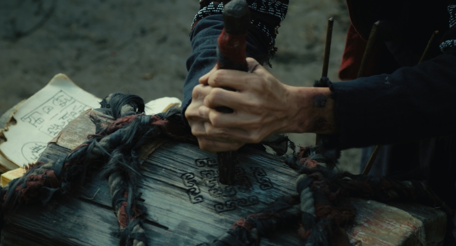 Trong first look poster vừa được công bố, 4 diễn viên xuất hiện trong tạo hình nhân vật vùng cao, gương mặt toát lên những biểu cảm khác nhau như phải đối mặt với một thế lực tà ác khủng khiếp. Kiều Minh Tuấn nổi bật với ánh mắt kiên nghị cùng con dao trừ tà rướm máu trên tay, trong khi Đoàn Minh Anh gây chú ý với chuỗi tràng hạt, gợi mở vai diễn mang màu sắc tâm linh bí ẩn. Ở nửa còn lại của poster, Diệp Bảo Ngọc và sao nhí Nina lộ rõ vẻ sợ hãi trước mối hiểm nguy đang cận kề. Cả bốn diễn viên được đặt trong bối cảnh núi rừng đầy u ám với mặt đất loang lổ vết máu, bùa chú giăng mắc khắp nơi và những mái nhà sàn tối tăm… góp phần tạo nên bầu không khí ma mị, lạnh lẽo.