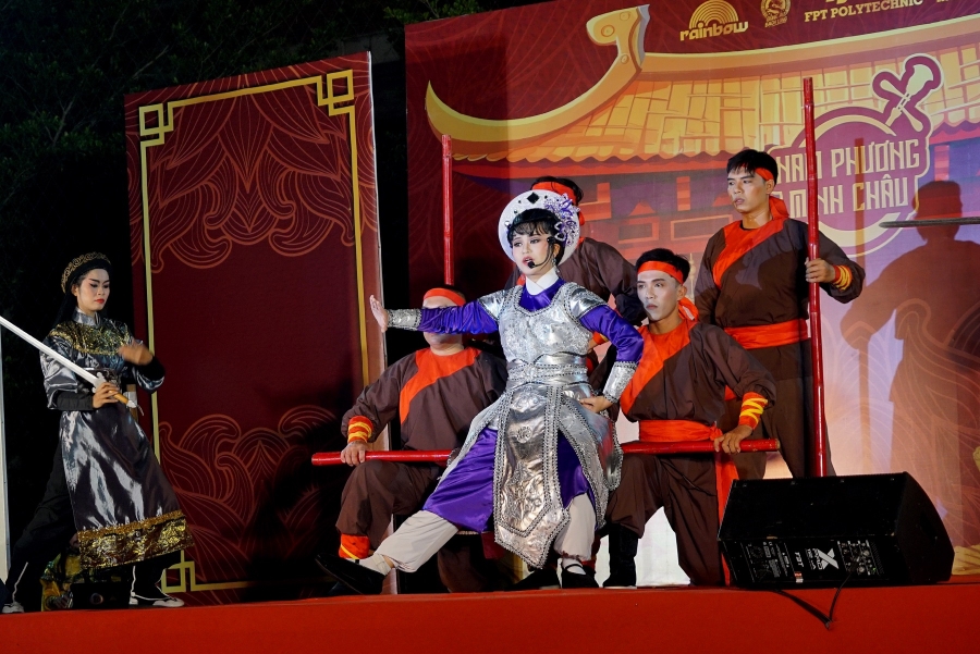 Sau khi mở màn vài tiết mục văn nghệ "cây nhà lá vườn" của các sinh viên nhà trường, tiếp đến là phần giới thiệu long trọng về NSUT Bạch Long người đầu tiên của sân khấu Sài Gòn chịu về miền Tây diễn tuồng cổ.