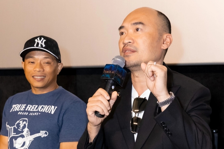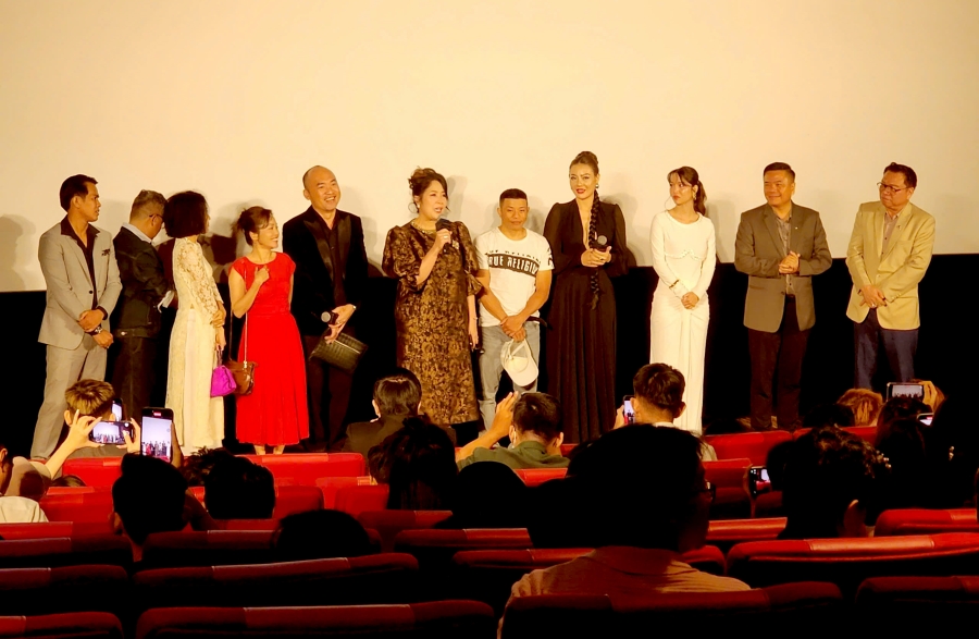 Đạo diễn Bùi Văn Hải sau buổi chiếu được người yêu phim xin chụp ảnh lưu niệm
