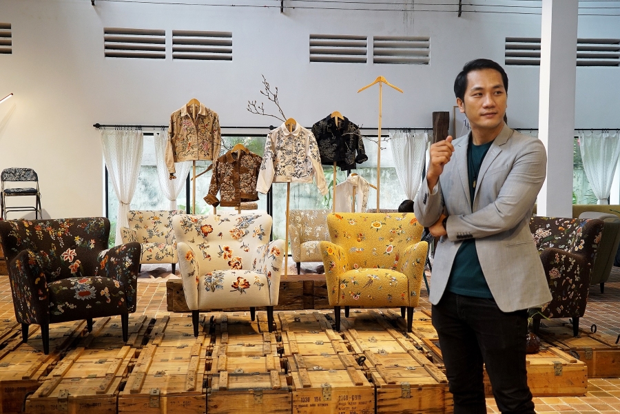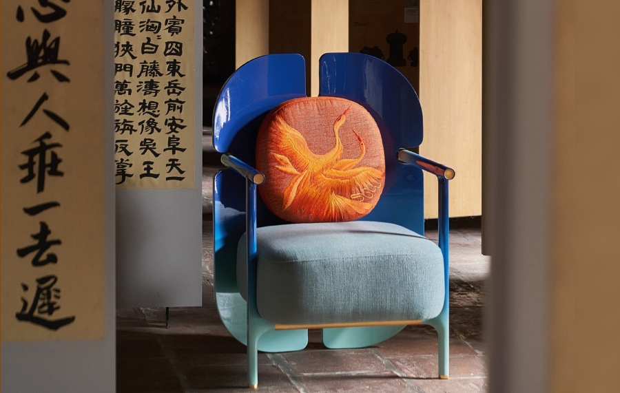 Còn NTK nội thất Nguyễn Phương Chi - người đoạt nhiều giải thưởng quốc tế về ngành nội thất. Trong triển lãm lần này, chị mang đến những tác phẩm lấy cảm hứng từ cái chõng tre Việt nâng tầm thành ghế sofa cao cấp. Hoặc ghế sơn mài, gối thêu lấy chất liệu sáng tác từ chiếc ghế của Nam Phương hoàng hậu khi còn tại vị.