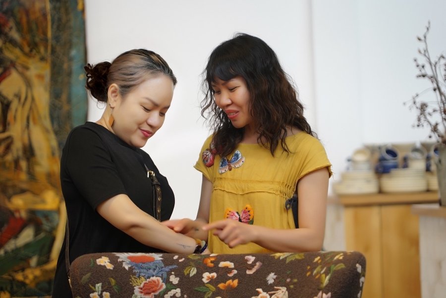 Rất nhiều khách hàng lần đầu tiên được đến, được chia sẻ từ các vị nữ chủ nhân xinh đẹp, tài giỏi đầy hiếu khách, đặc biệt khách đến đây được thưởng lãm các vật dụng gần gũi như quần áo, bàn ghế... thêu nhiều hoa văn, rồi các ly chén dĩa bình gấ, sứ cực kỳ ấn tượng qua nhiều màu sắc và sự trình bày ấn tượng độc đáo tạo cảm giác cho người đến tham quan vô cùng thoải mái và thán phục.