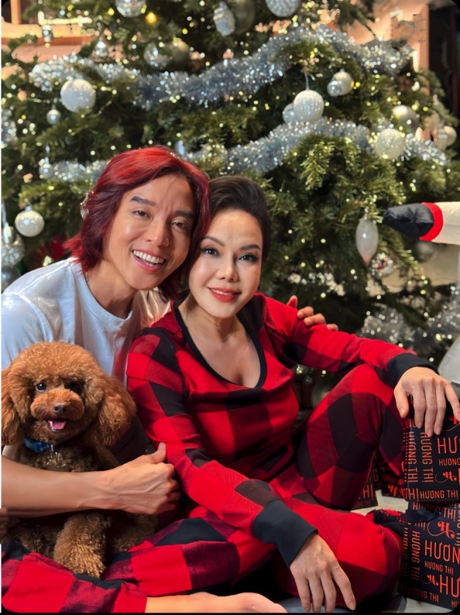 Gia đình nhỏ của Việt Hương – Hoài Phương vừa tung bộ ảnh Giáng sinh rực rỡ, chia sẻ những giây phút đầm ấm bên nhau với khán giả. Trong ảnh, vợ chồng Việt Hương – Hoài Phương cùng con gái Elyza cùng diện đồ đỏ rạng rỡ, quây quần bên cây thông Noel được trang hoàng lộng lẫy ngay trong nhà. Xung quanh là người tuyết và những món quà để tô điểm thêm cho không gian gia đình thêm ấm cúng.