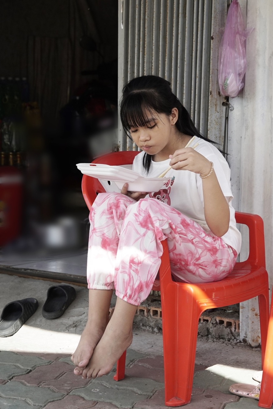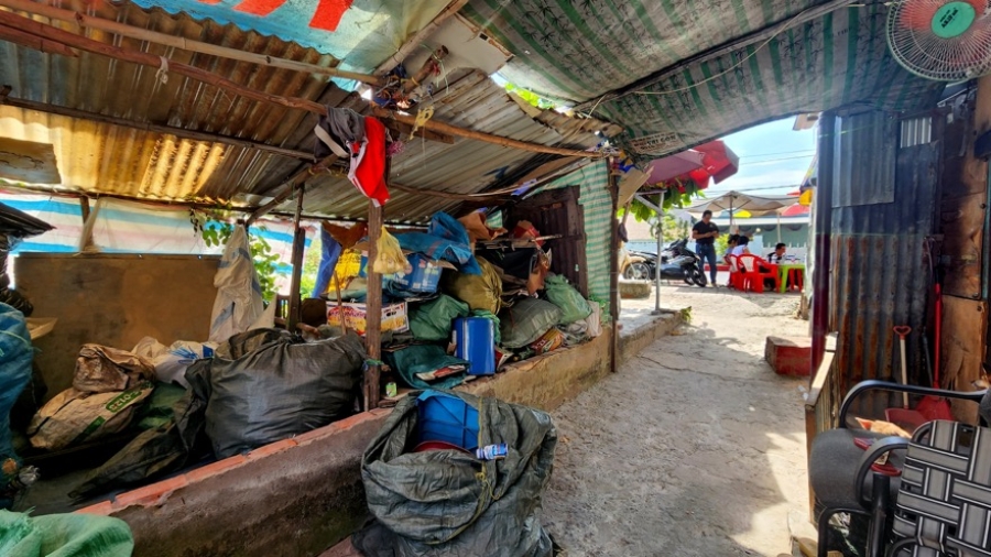 Chị Hoàng Kim dẫn tôi đi tham quan xóm nhỏ và nói: " Giờ trời nắng thì khô ráo, chứ mưa là tèm lem, nước ngập lội bì bỏm là chuyện thường tình. Bà con ở đây đa số... thất nghiệp hoặc làm đủ thứ nghề ít tiền như thu nhặt ve chay, bán vé số, phụ hồ, lao công... khá hơn chút thì có em là sinh viên nhưng cũng vào tình trạng bữa đói bữa no. Thê thảm nhất là những ngày bị dịch covid, cứ nhìn họ thiếu trước hụt sau, không còn gì để ăn thì mới hiểu được sự cơ cực đến dường nào, đó là chưa kể sự nguy hiểm từ cơn dịch quỷ quái gây ra những cái chết mà đến giờ nhớ lại vẫn còn rợn người. Chị Hoàng Kim từng bám vùng này trong suốt mùa dịch để hỗ trợ bà con nên khá rành, và sự ra đời bếp ăn chay 0 đồng cũng xuất phát từ ngày đó, tính ra gần 4 năm...".