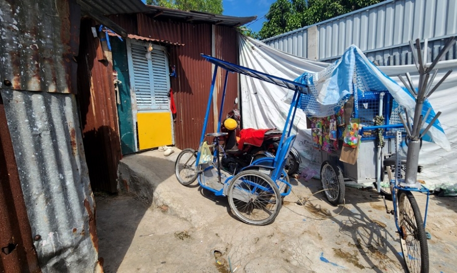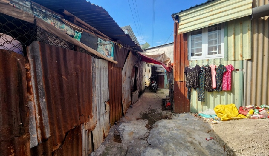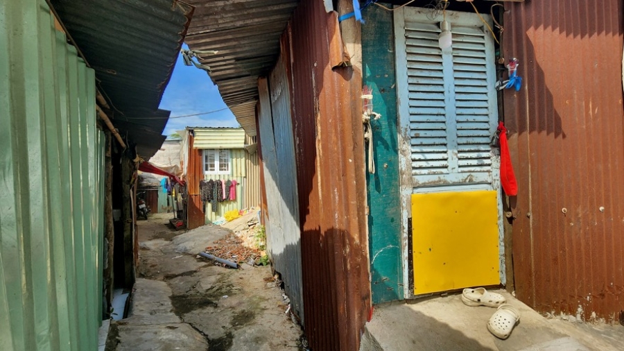 Nói là xóm nghèo, nhưng mới nhìn con đường to lớn mới tinh e rằng nhiều người không tin. Nhưng khi cái nắng chói chang xuyên thẳng vào bếp nấu ăn của những bà nội trợ, và đằng sau dãi nhà là con hẻm nhỏ như vừa đủ cho chiếc xe honda chạy vào là những ngôi nhà eo hẹp, lụp xụp, ngỗn ngang những đống phế liệu, đã vậy chiếc xe lăn chấn ngang đầu hẻm như báo hiệu "sự nghèo" đang vương vấn đâu đây!